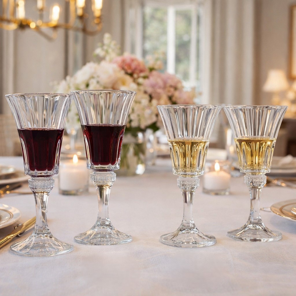 Forma specifica a paharului de vin din colectia Wellington ajuta la intensificarea aromelor delicate si la mentinerea temperaturii ideale a vinului, oferind o experienta de degustare desavarsita.