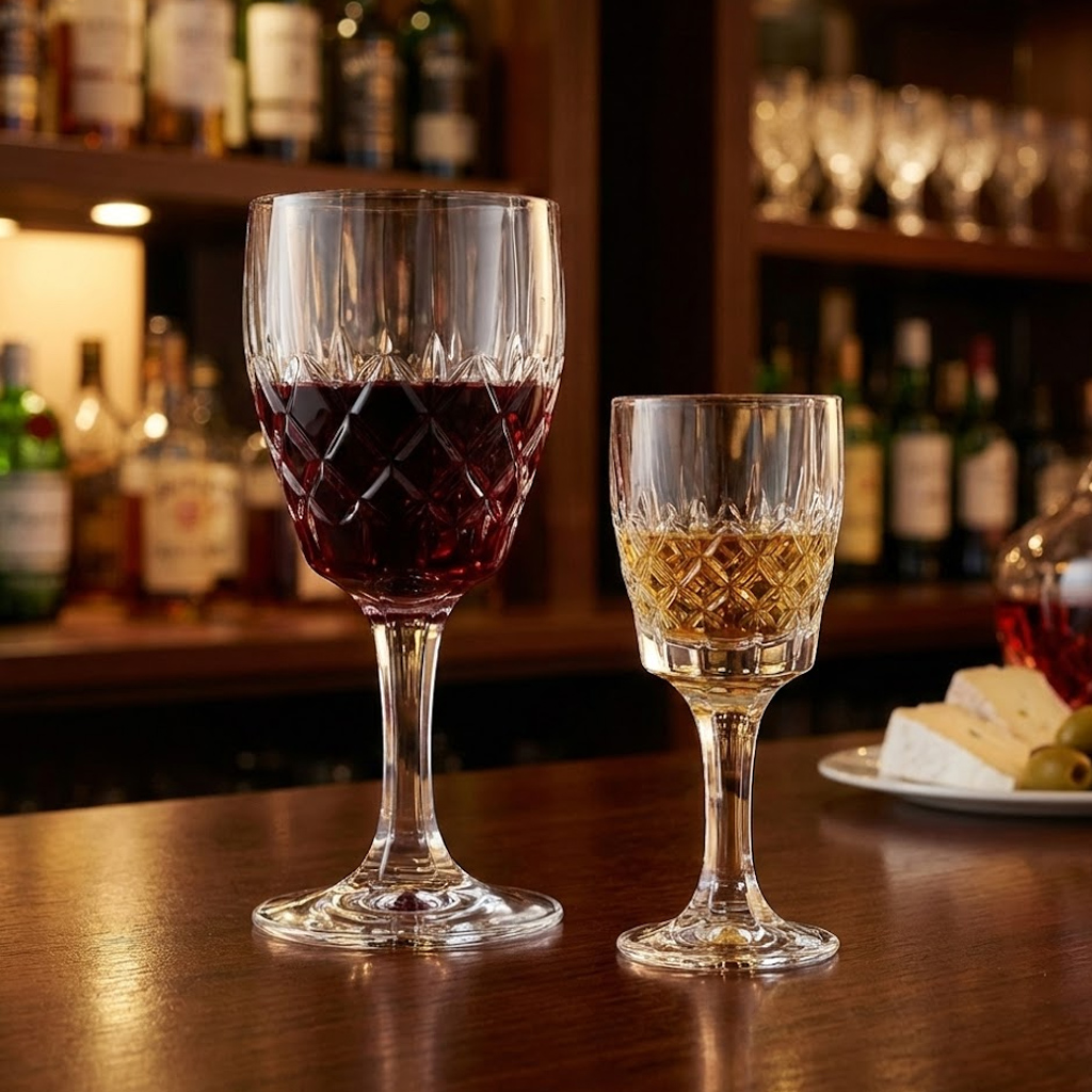 Paharele de vin de 170 ml sunt ideale pentru vin alb, rose sau vin rosu servit in portii echilibrate, fiind potrivite pentru degustari si momente in care vrei o servire controlata, dar eleganta. In completare, paharele de aperitiv de 60 ml sunt perfecte pentru lichior, tuica sau palinca, oferind o prezentare frumoasa si coerenta pe masa.