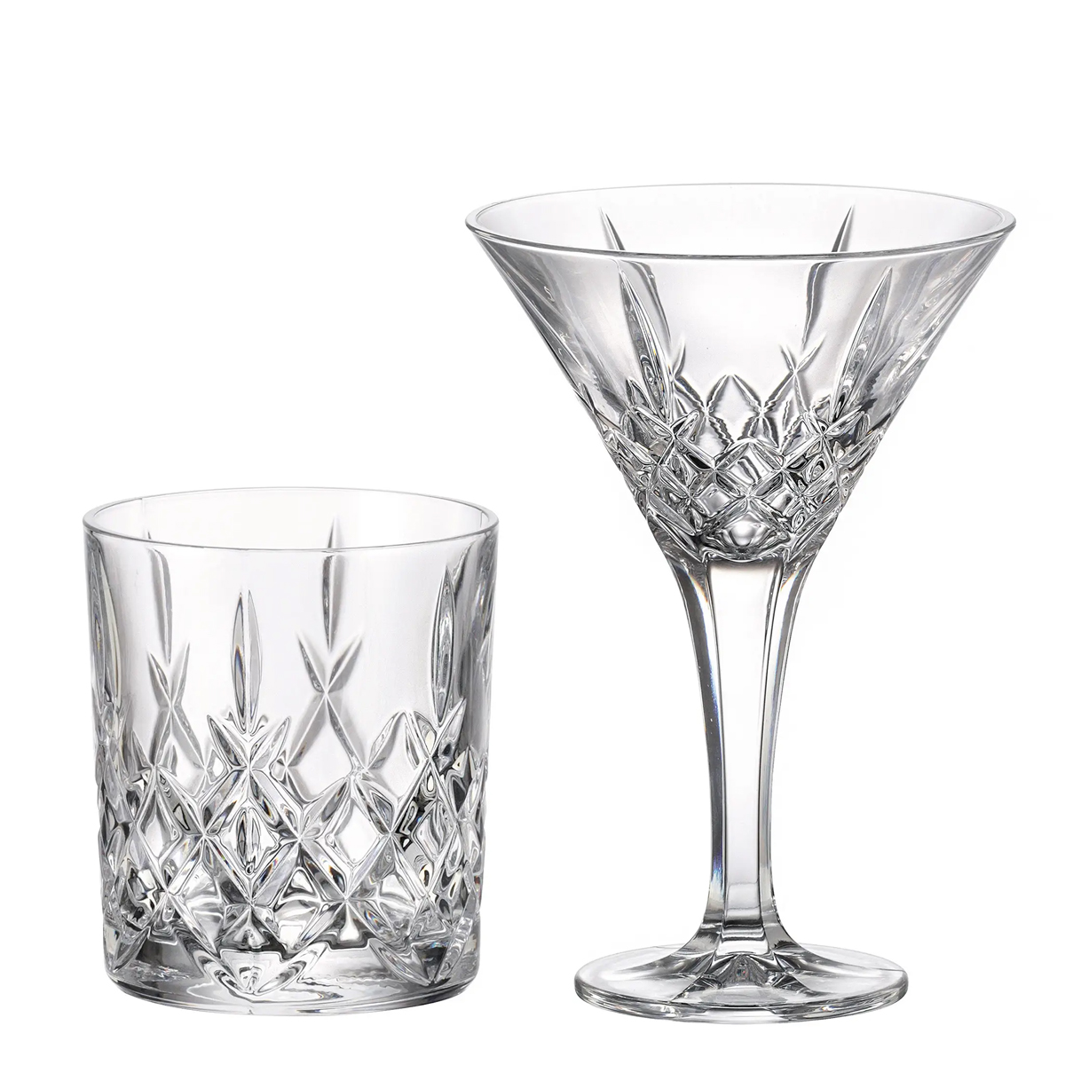 Paharele de martini de 280 ml sunt potrivite pentru cocktailuri clasice precum martini, cosmopolitan sau aperitive servite rece. Forma lor pune in valoare prezentarea bauturii si le face perfecte pentru momente speciale, cand vrei un plus de rafinament pe masa. Paharele de whisky de 320 ml completeaza setul cu o varianta versatila, potrivita pentru whisky, bourbon, bauturi spirtoase servite cu gheata, dar si pentru cocktailuri scurte.