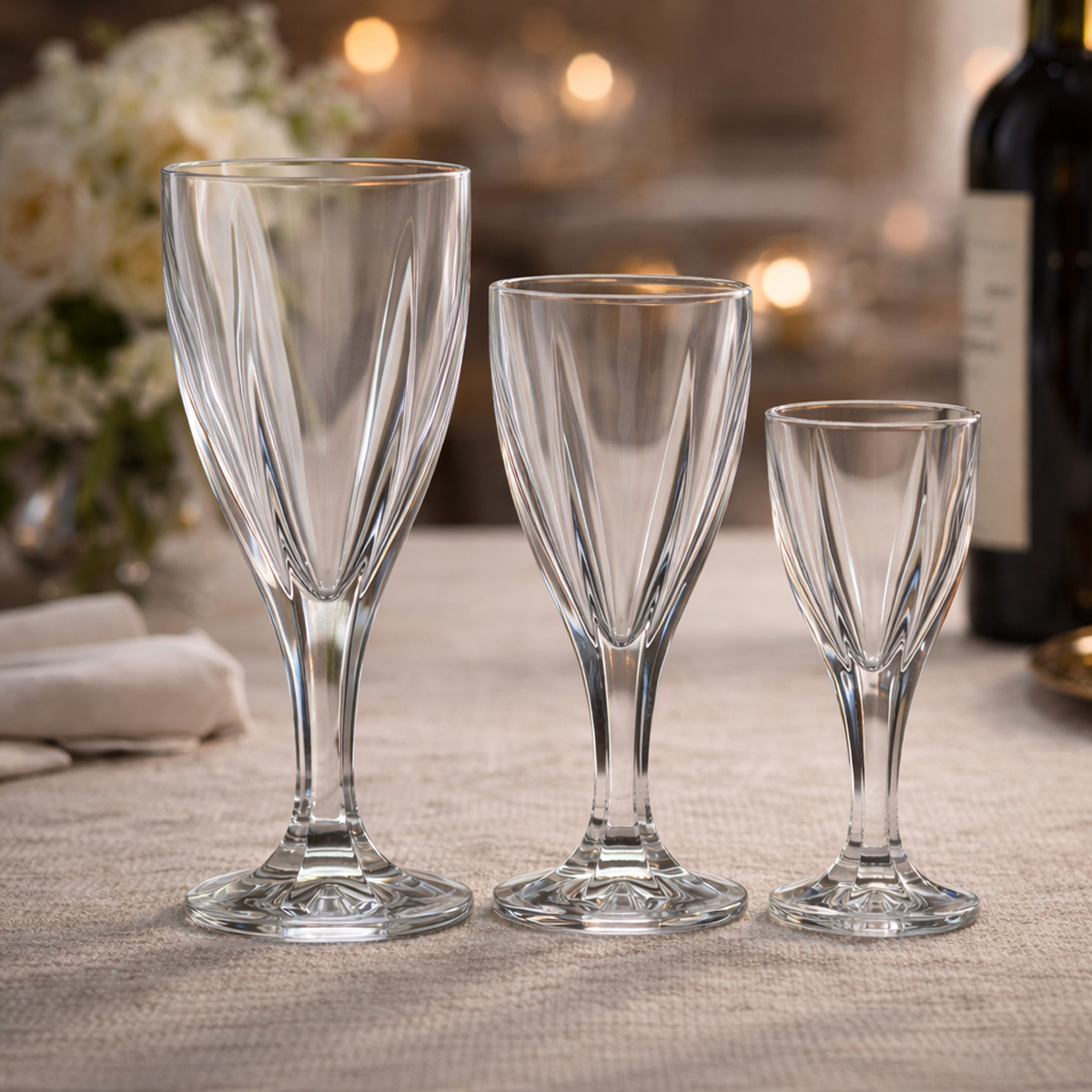 Forma fiecarui pahar este adaptata tipului de bautura, permitand aerisirea vinului si controlul cantitatii la servire. Cristal Bohemia autentic cu 24% PbO asigura transparenta buna si rezistenta in utilizare, atunci cand este intretinut corect