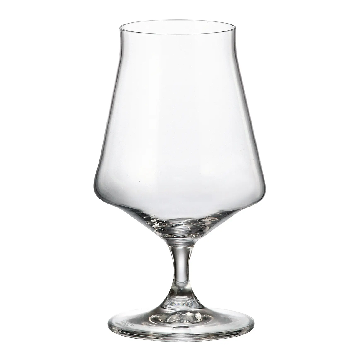 Forma ampla si usor inchisa in partea superioara permite concentrarea mirosului, iar dimensiunea cupei este potrivita pentru a fi tinuta in palma, astfel incat bautura sa se incalzeasca usor si natural. Piciorul scurt si baza stabila asigura echilibru pe masa.