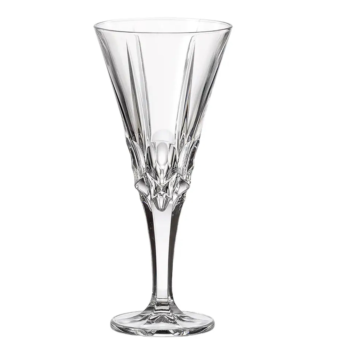 Fiecare pahar este fabricat din cristal Bohemia autentic cu 24% PbO si prezinta bulina oficiala de autenticitate. Capacitatea de 240 ml permite turnarea unei portii corecte pentru degustare, iar peretii uniformi contribuie la o utilizare repetata fara riscul de deteriorare rapida.