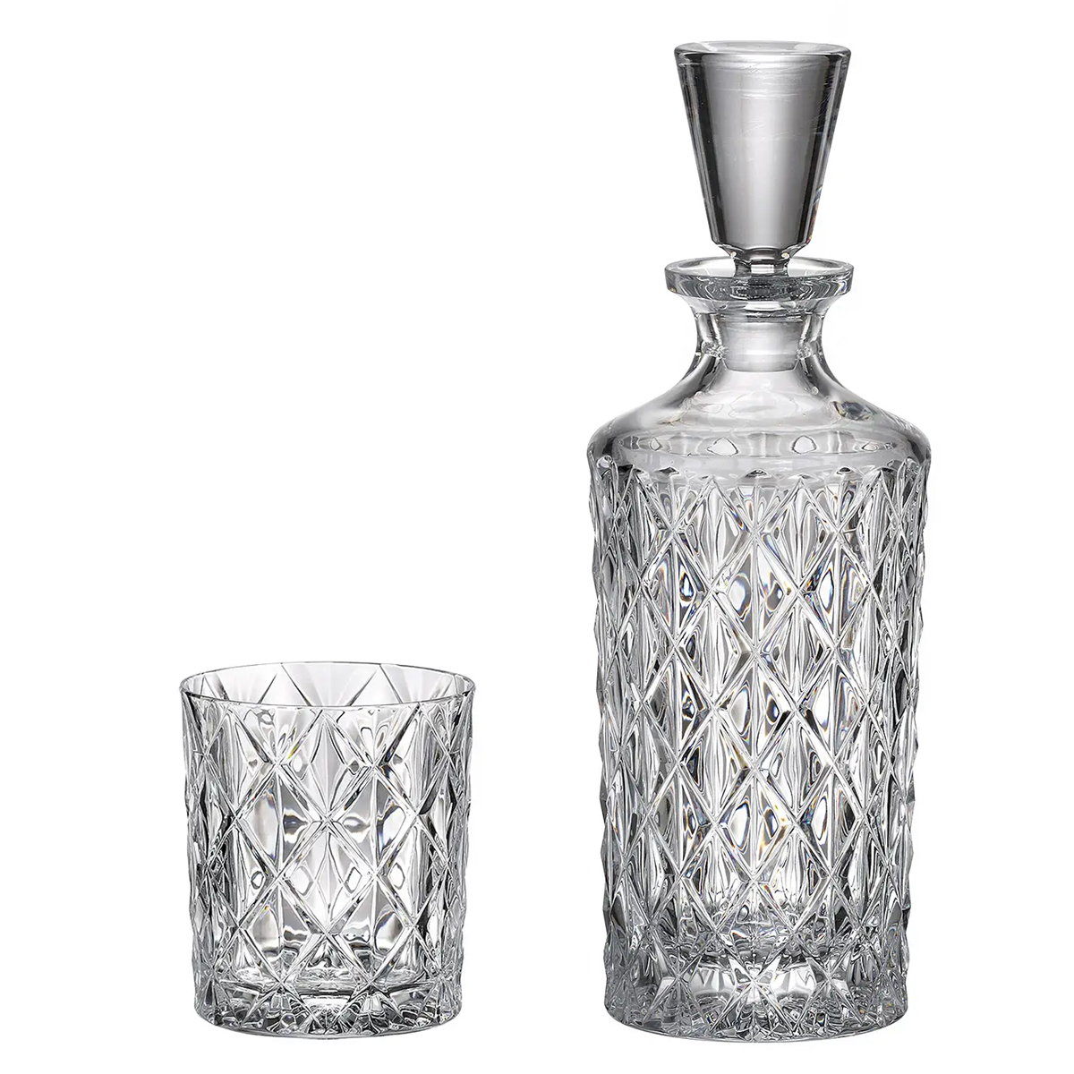 Set 6 pahare whisky 300 ml cu sticla 700 ml Cristal Bohemia Memphis. Accesorii premium pentru bar, cristal autentic si ambalaj elegant tip cadou.
